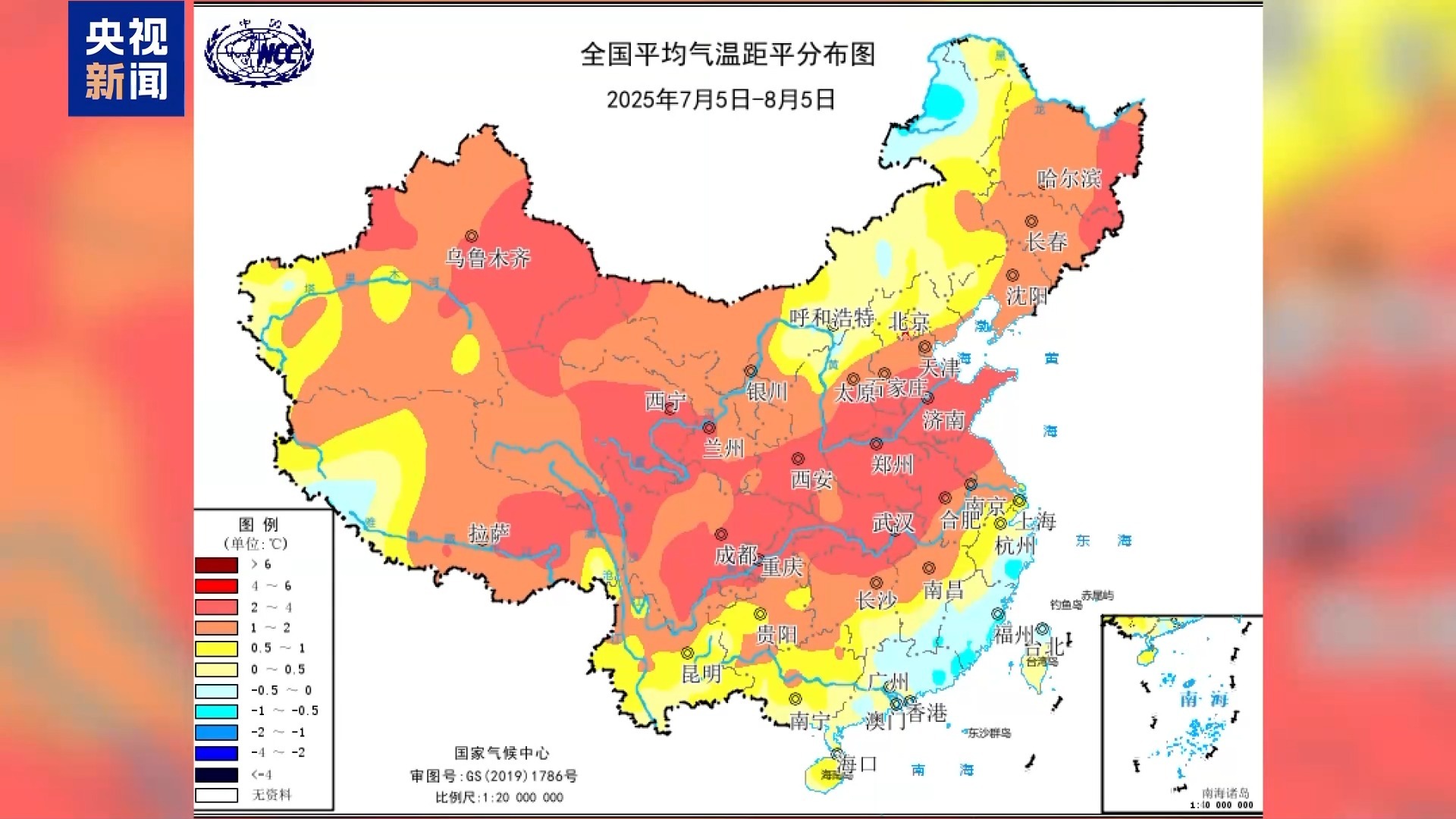 在气温方面,7月5日至8月5日,全国平均气温较常年同期偏高1.5℃,为1961年以来历史同期最高。